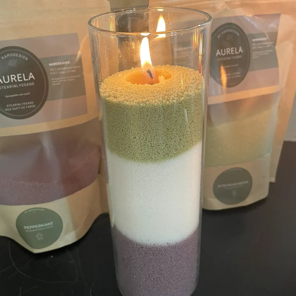 Med AURELA stearinlyssand kan du lage din egen stemning, ute eller inne – en ny og kreativ måte å tenne lys på!