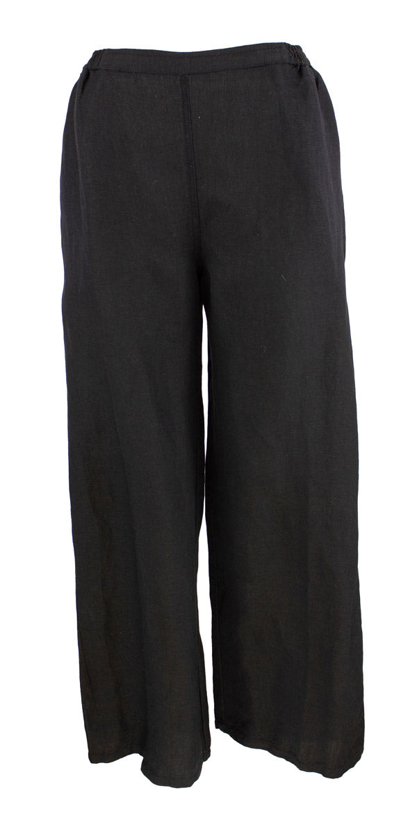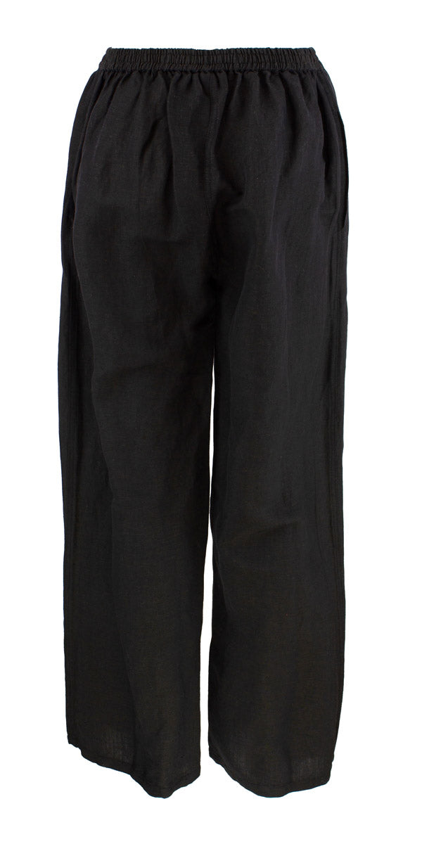 Superfin linbukse med strikk i livet og lommer på sidene.
