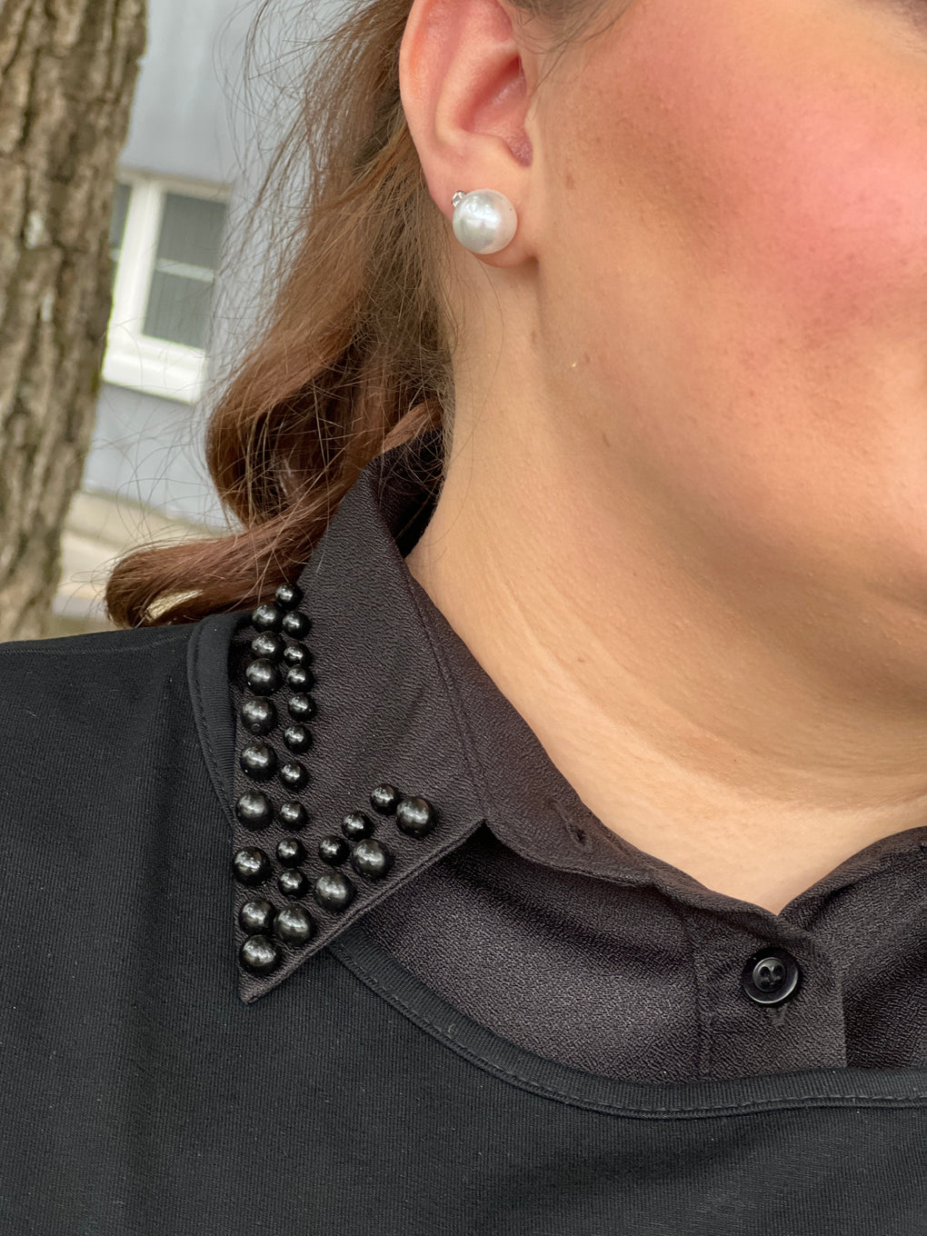 Skjortekrage m/perler Sort