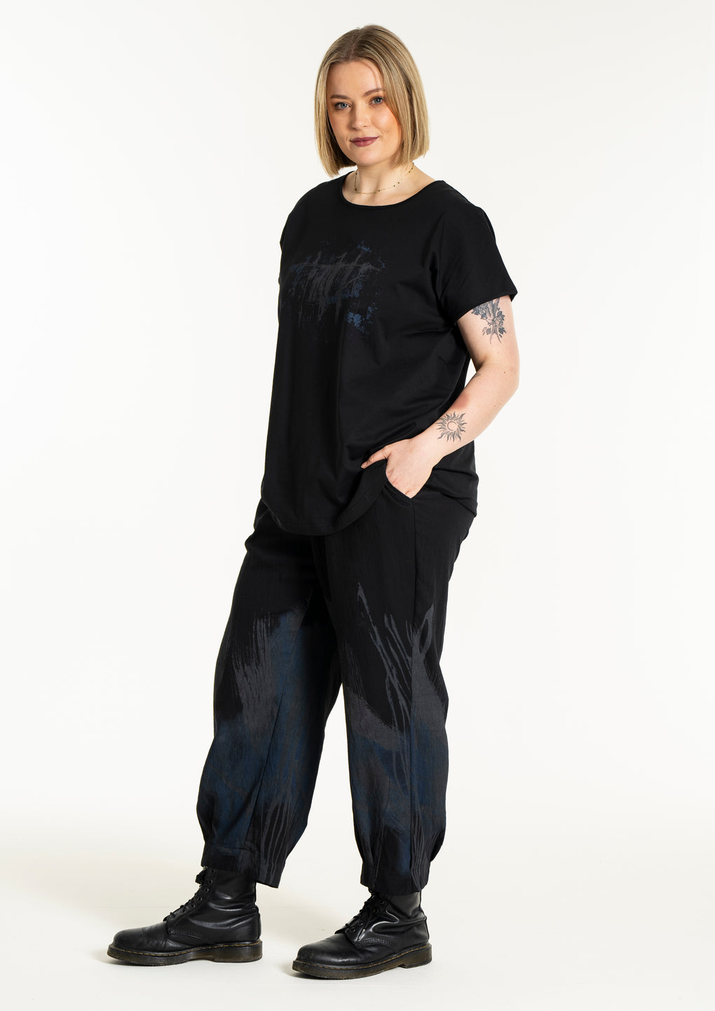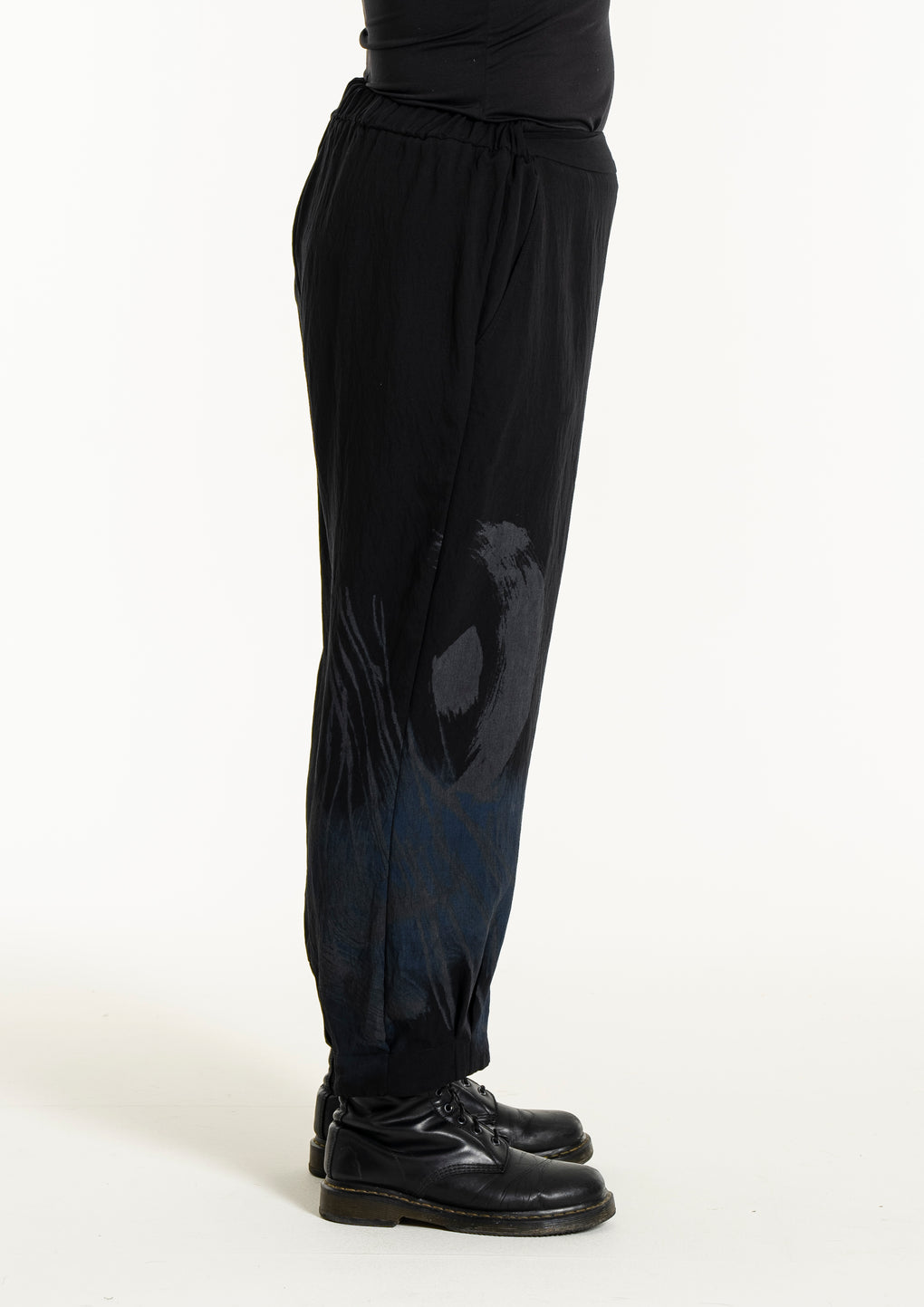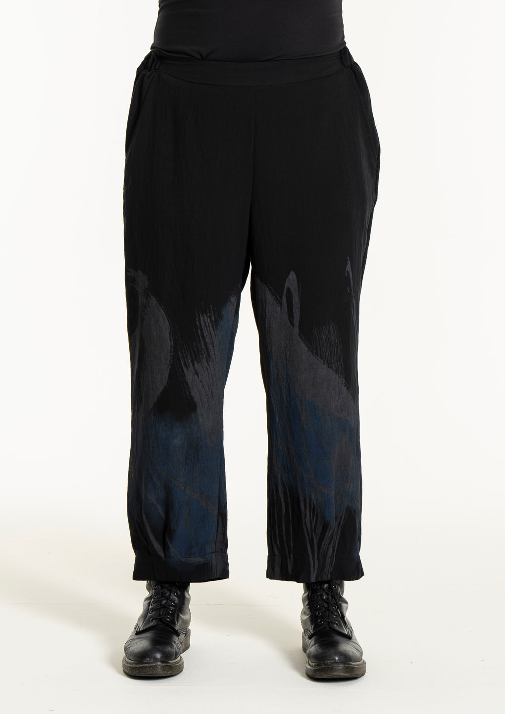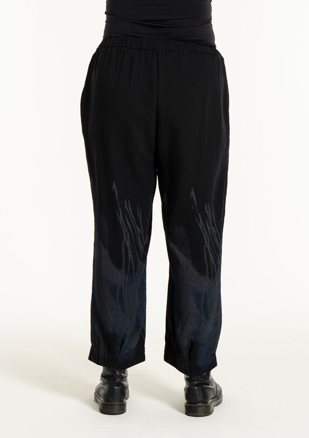 Sprek bukse med strikk i livet og 7/8 dels ben. Lommer på sidene og fint print nedover bena.