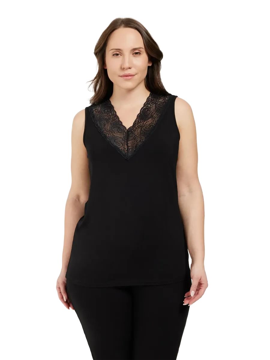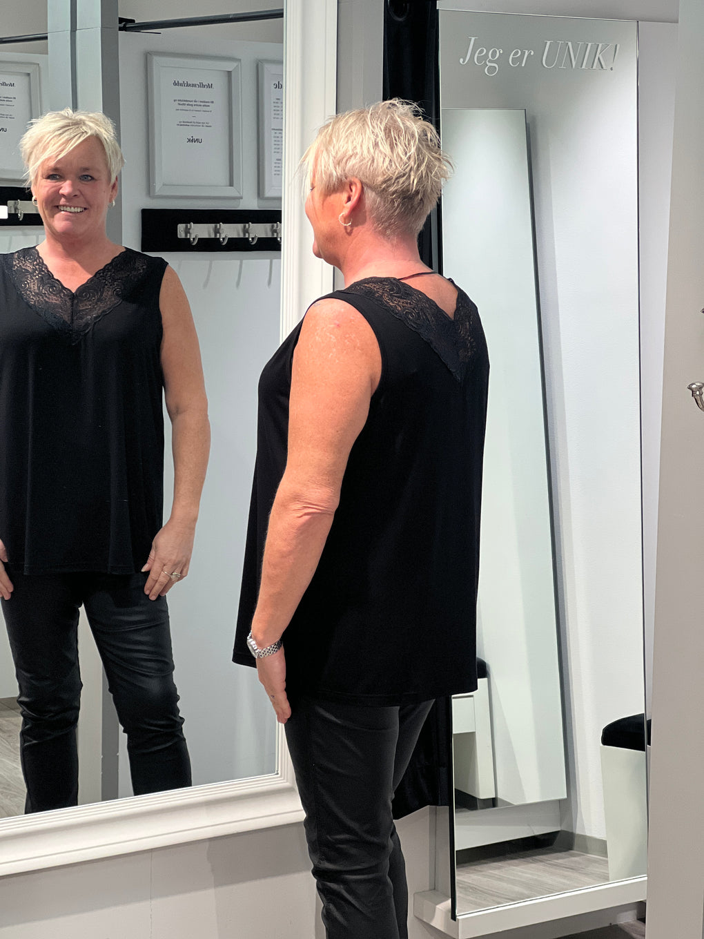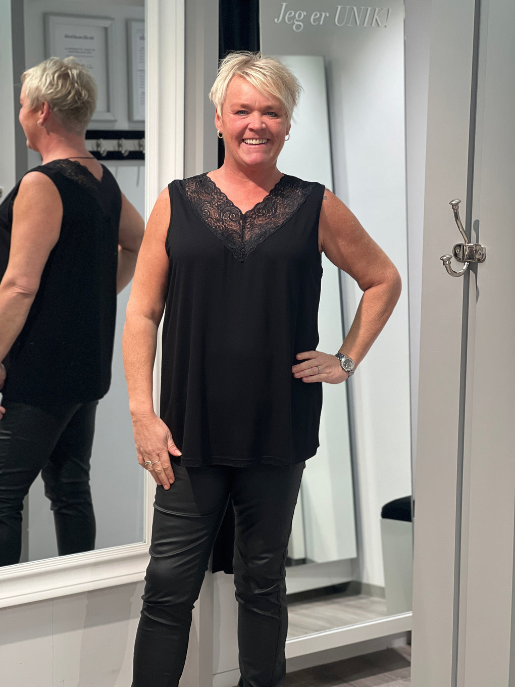 Søt singlet med V foran og bak med blonde.