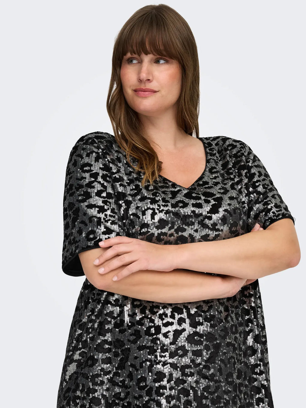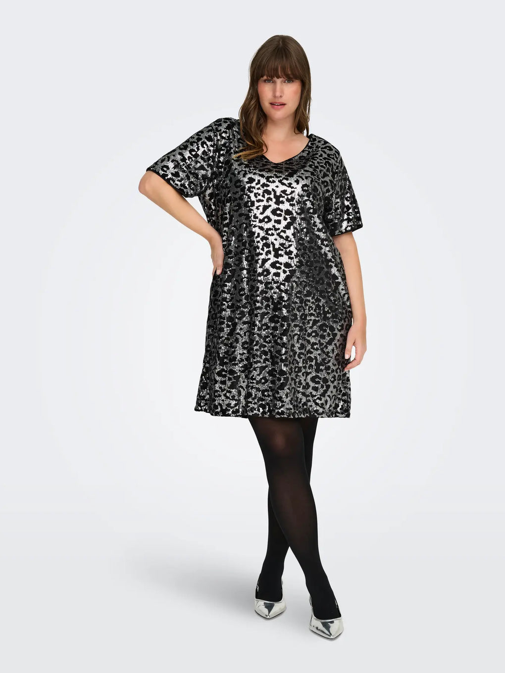Supersøt og sprek kjole. Den har v-hals og korte ermer.