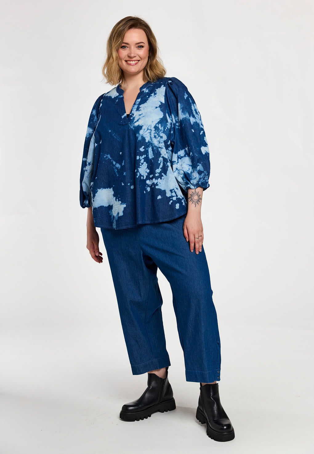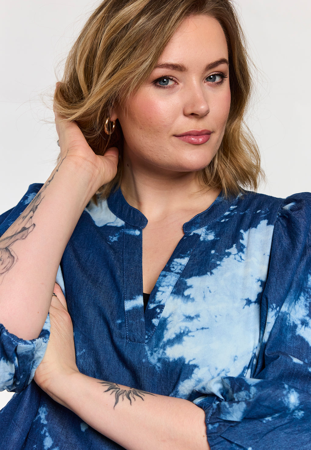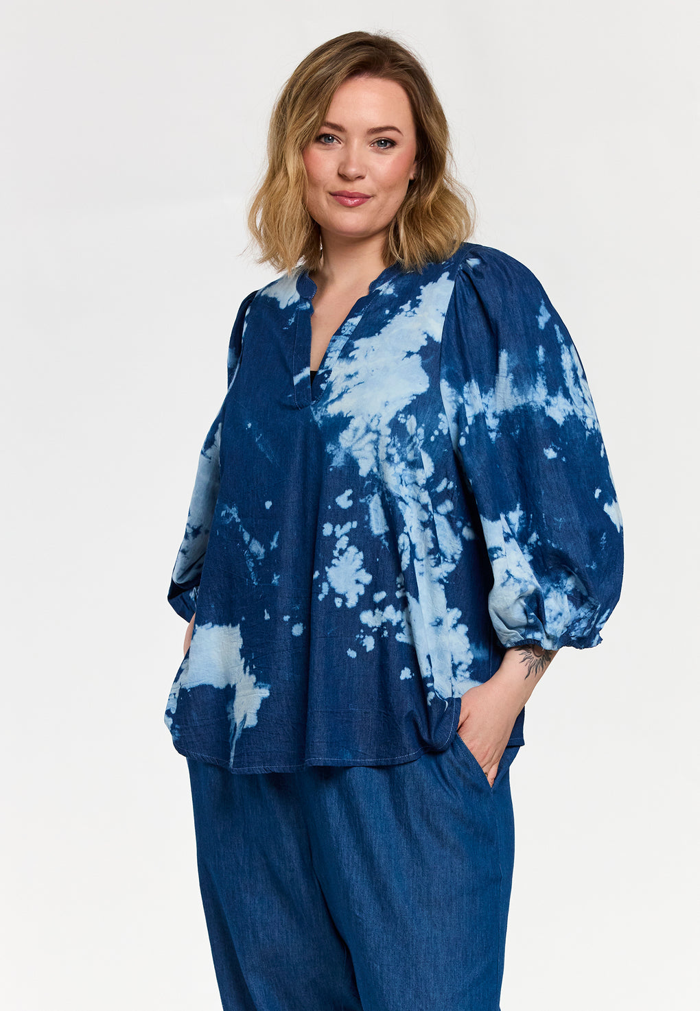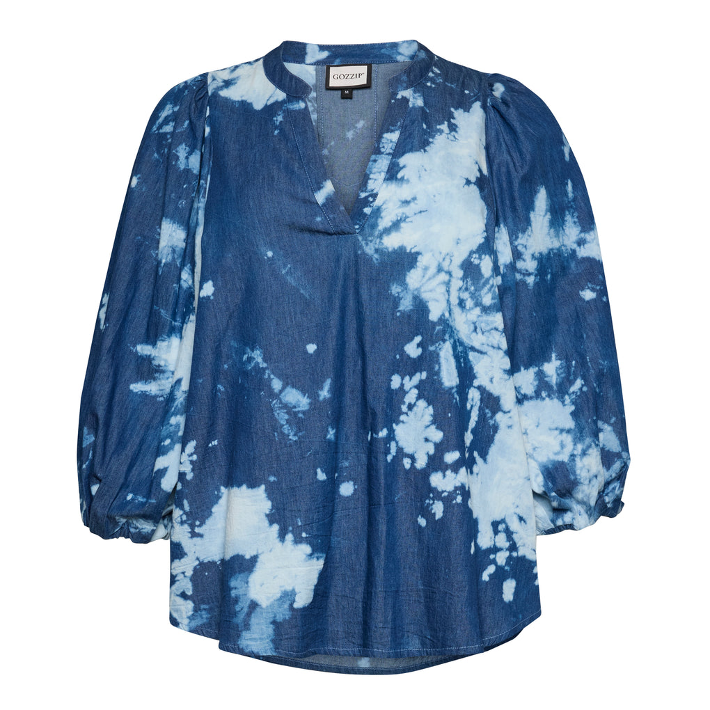 Fin bluse i bomull i ett fint print. Blusen har v-hals og 3/4 ermer. Den løse passformen gjør blusen perfekt både til jeans og leggings.