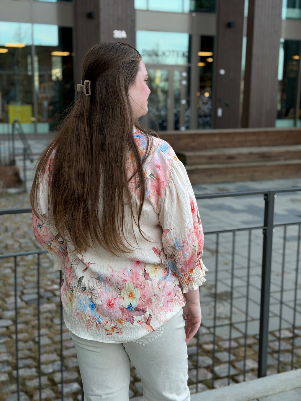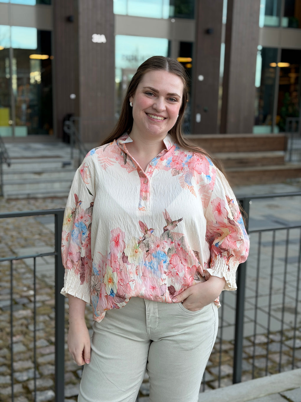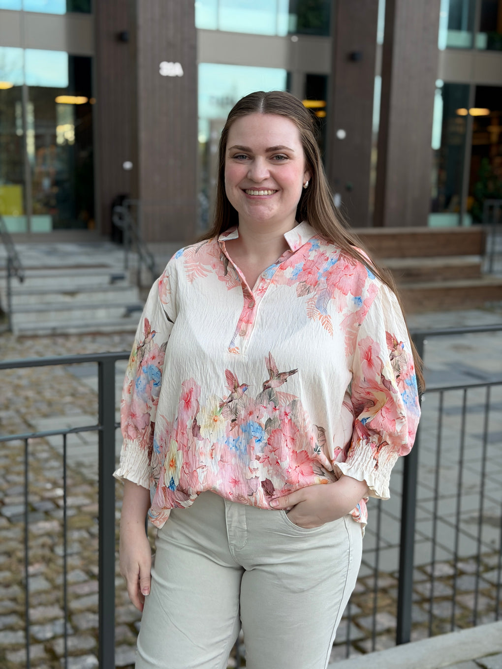 Feminin og elegant bluse fra Marta Du Château. Blusen har v-hals med knappedetalje og smock ved ermene. Blusen kan både brukes til hverdag og fest.