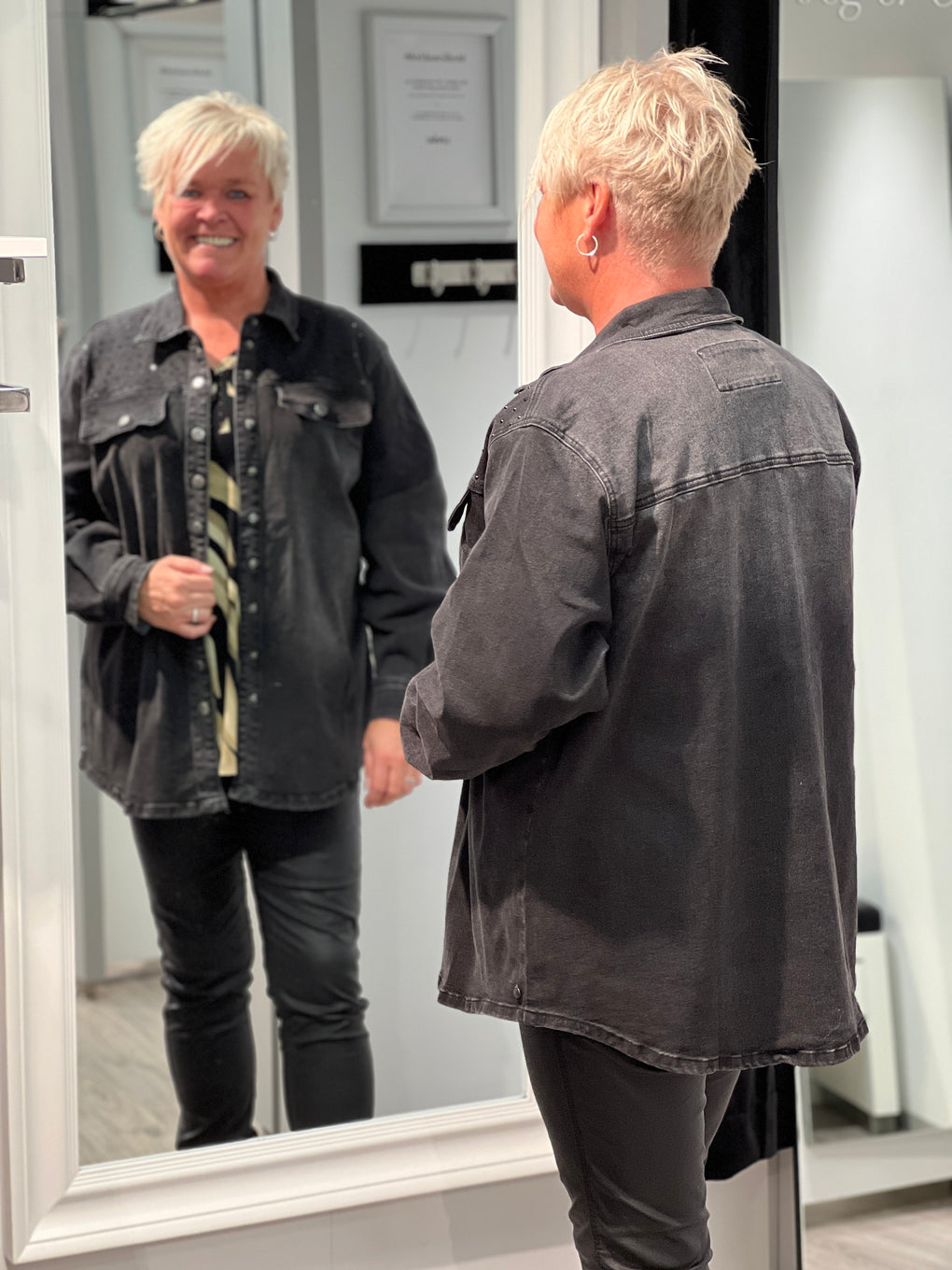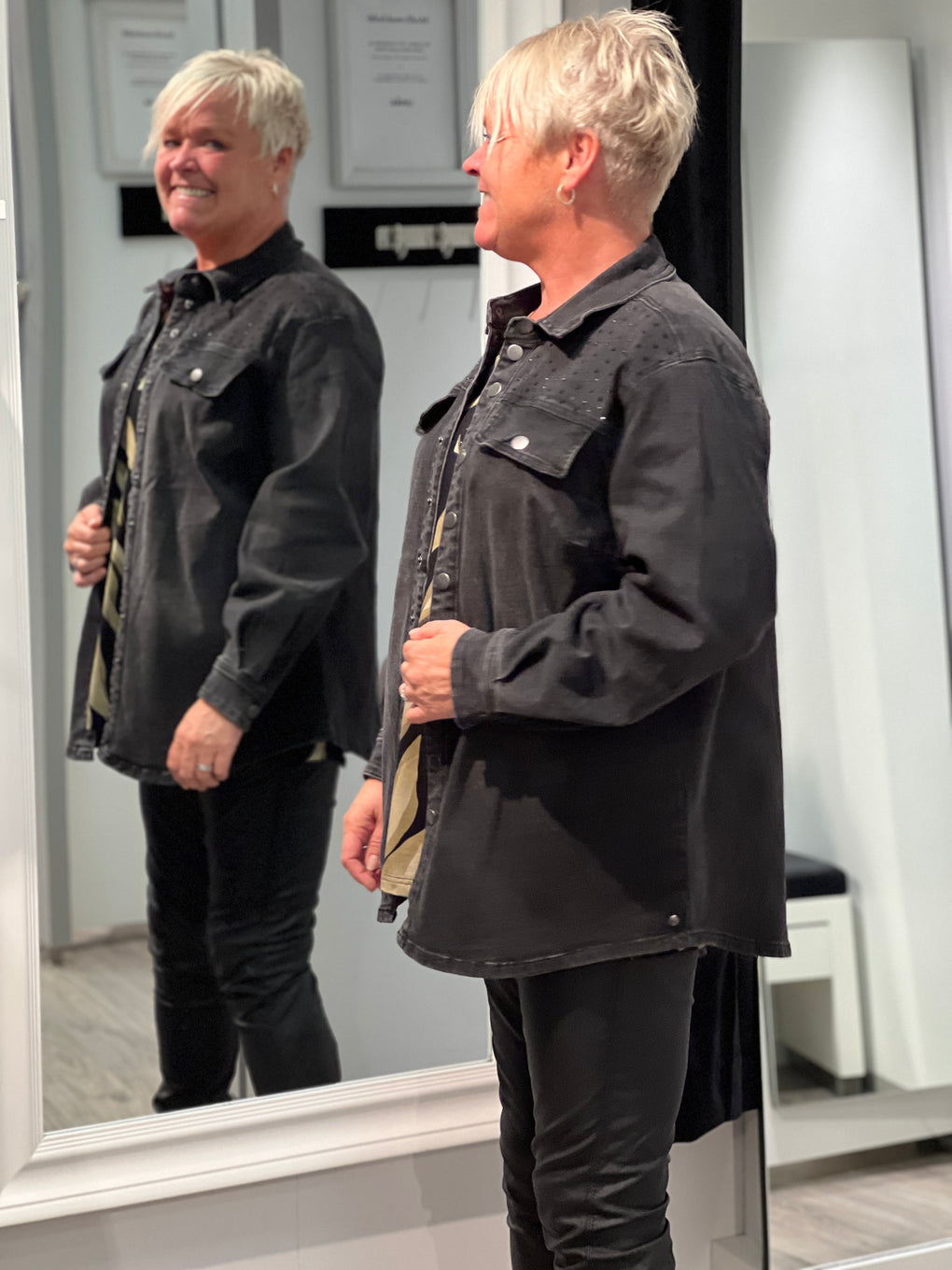 Sprek skjorte/jakke med fine detaljer på brystet. Lommer på brystet og knappestolpe hele veien foran.