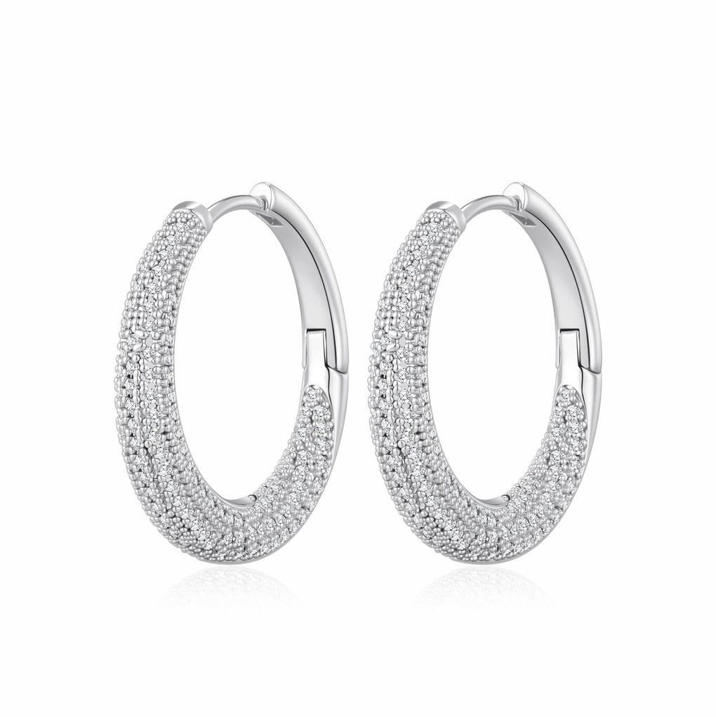 Øreringer med pyntestener. Øreringene er belagt 925 sølv og piggen i øredobben er laget av stål.