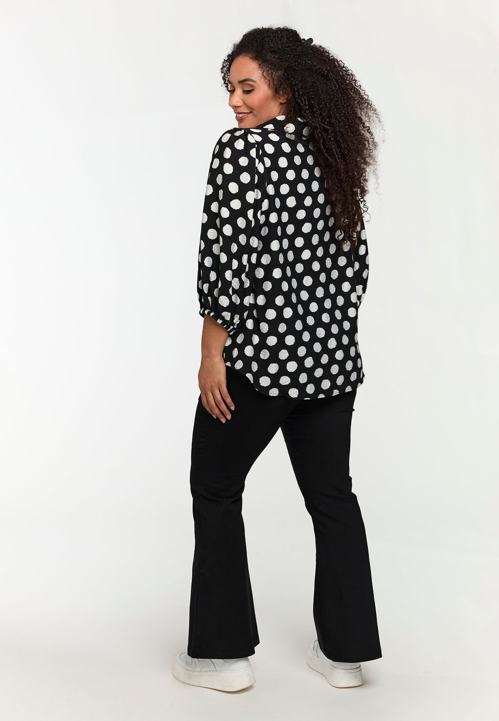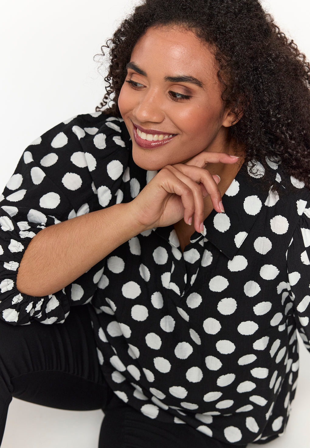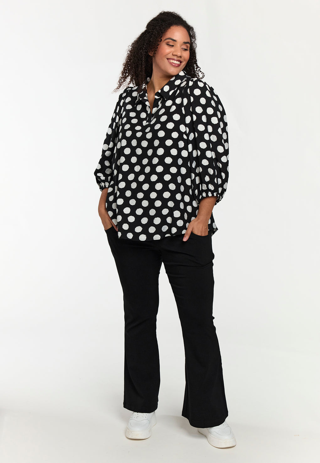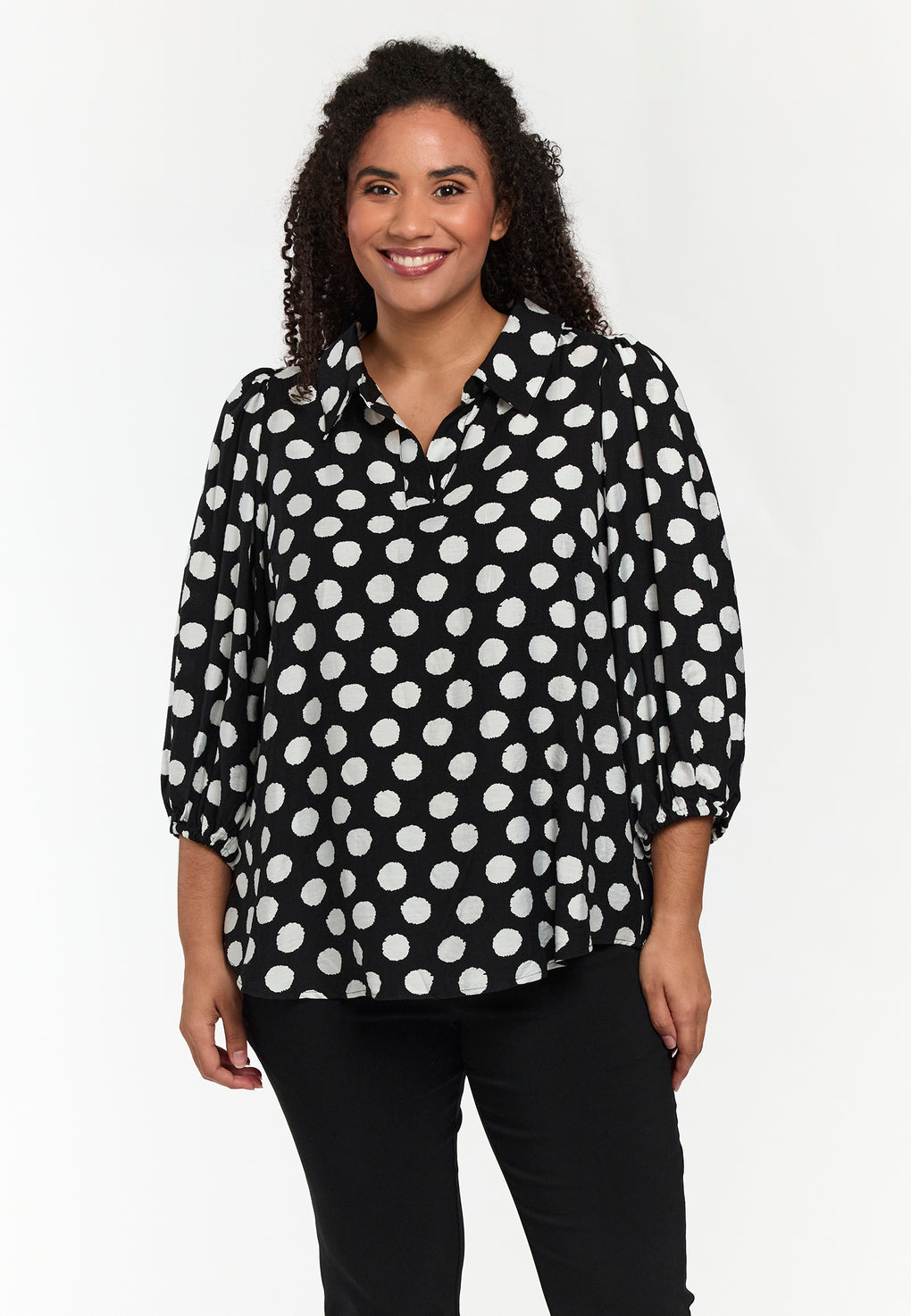 Supersøt og sprek bluse i deilig og lett viskose. V-hals og korte ermer med løs strikk.