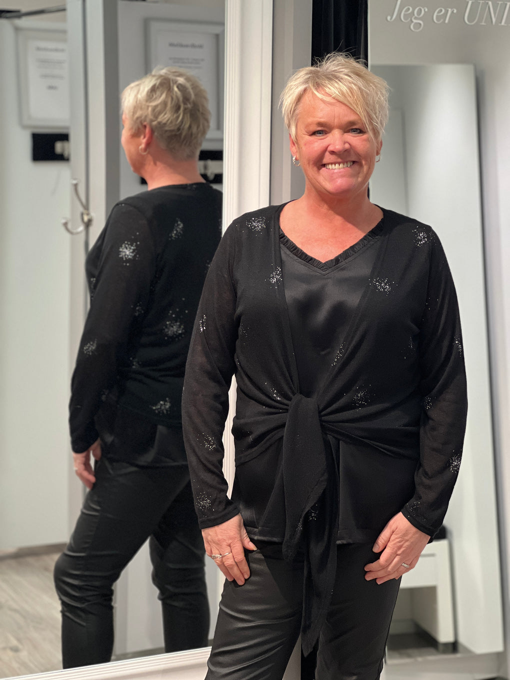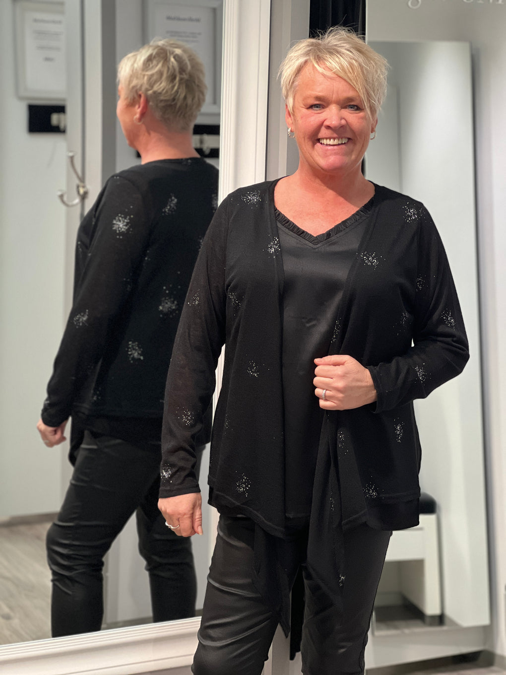 Bolero med lang erm og fine glitterdetaljer. Fin utenpå feks en kortermet kjole eller singlet.