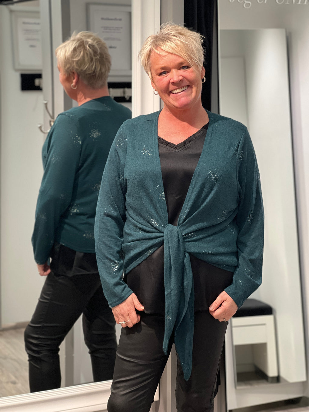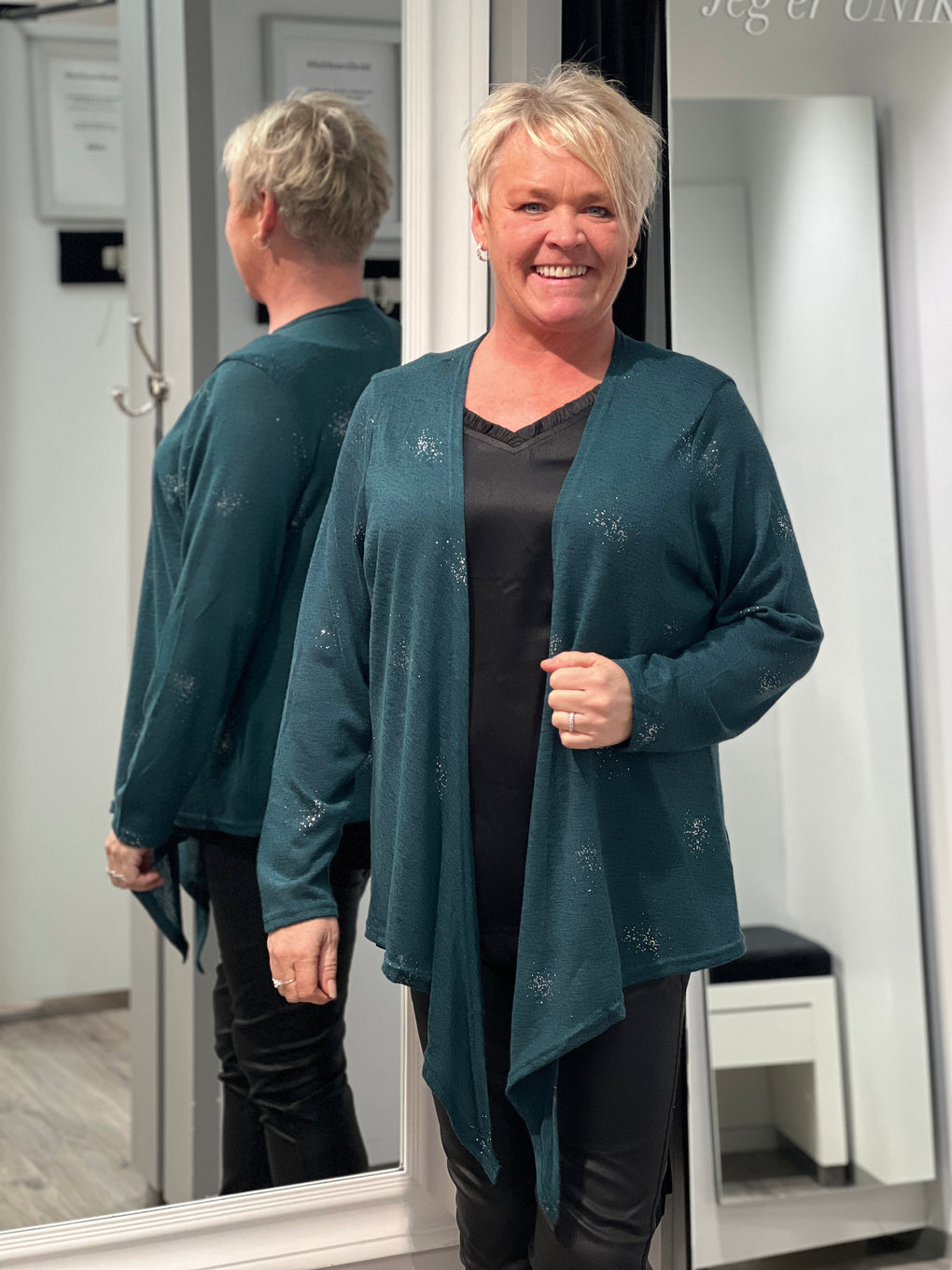 Bolero med lang erm og fine glitterdetaljer. Fin utenpå feks en kortermet kjole eller singlet.