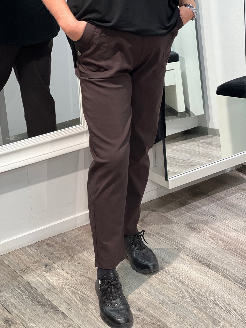 Bestselger bukse med stretch og strikk i livet. Buksa har fine knappedetalje på lommene. Denne har ikke søm foran.
