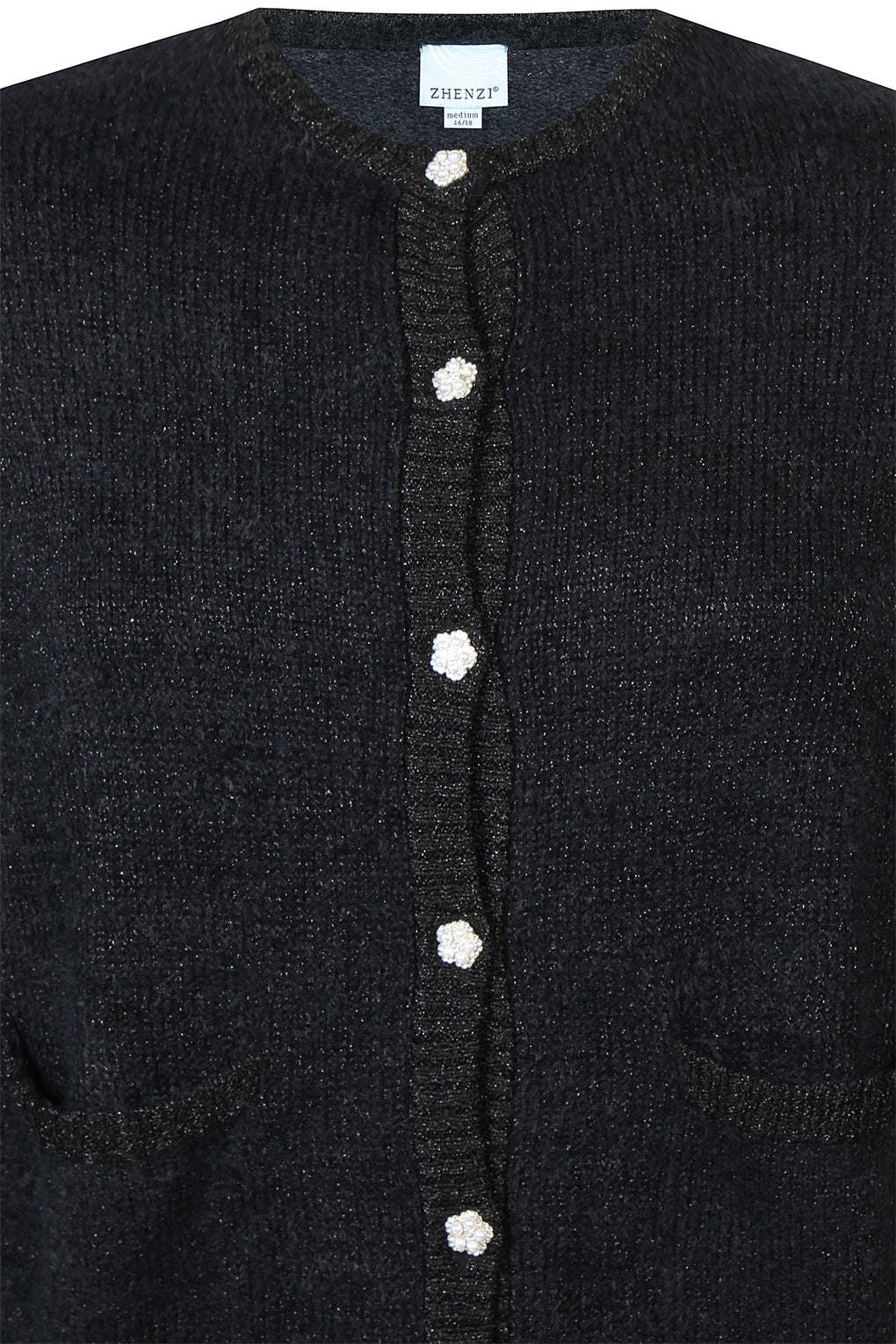Cardigan med rund hals, lange ermer og den søteste knappelukningen. Lurex i stoffet og pynter opp ett antrekk.