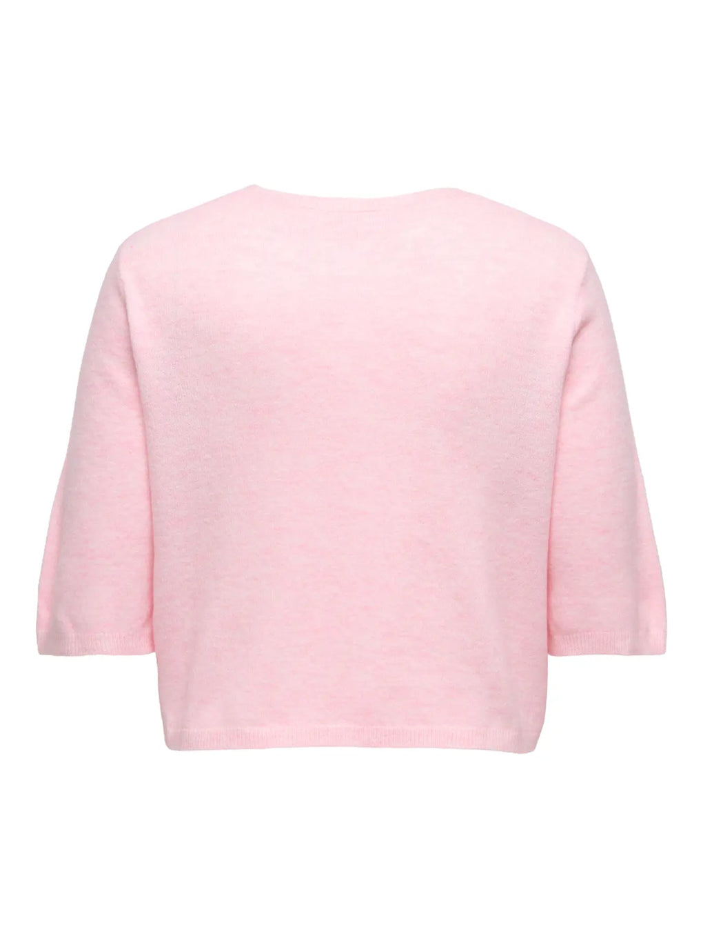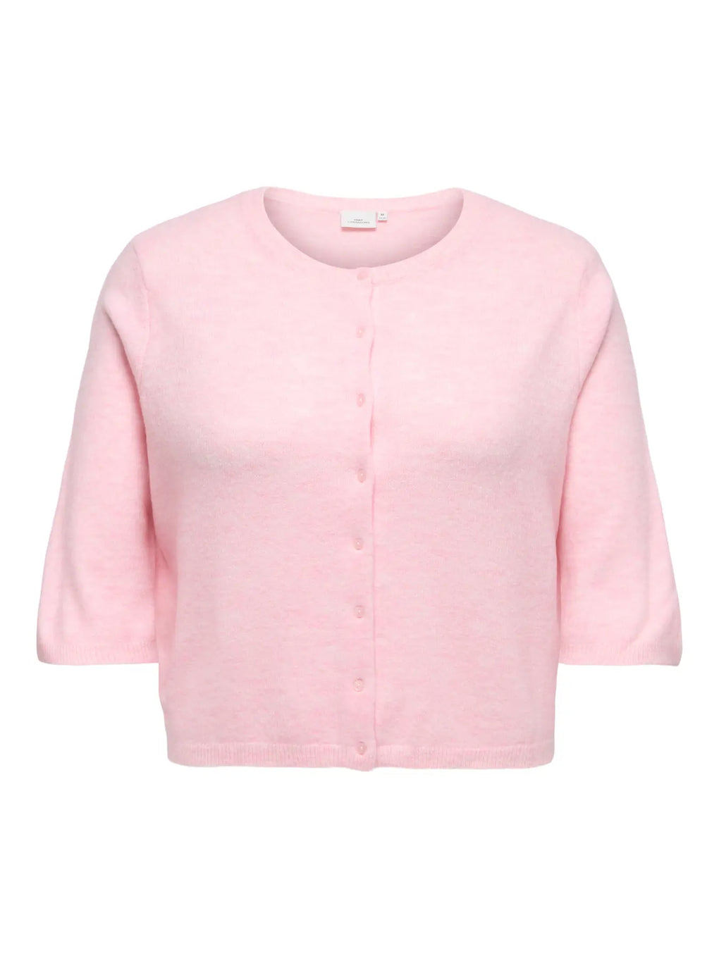Supersøt cardigan med rund hals, korte ermer og knappestolpe foran. NB! Litt liten på størrelsen.