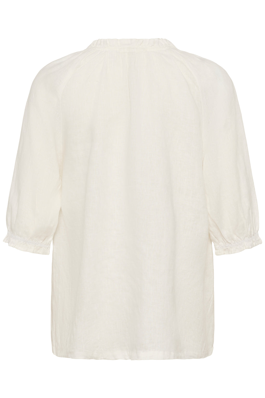 Supersøt bluse med fine detaljer i front. Korte ermer og knytebånd med V-hals.