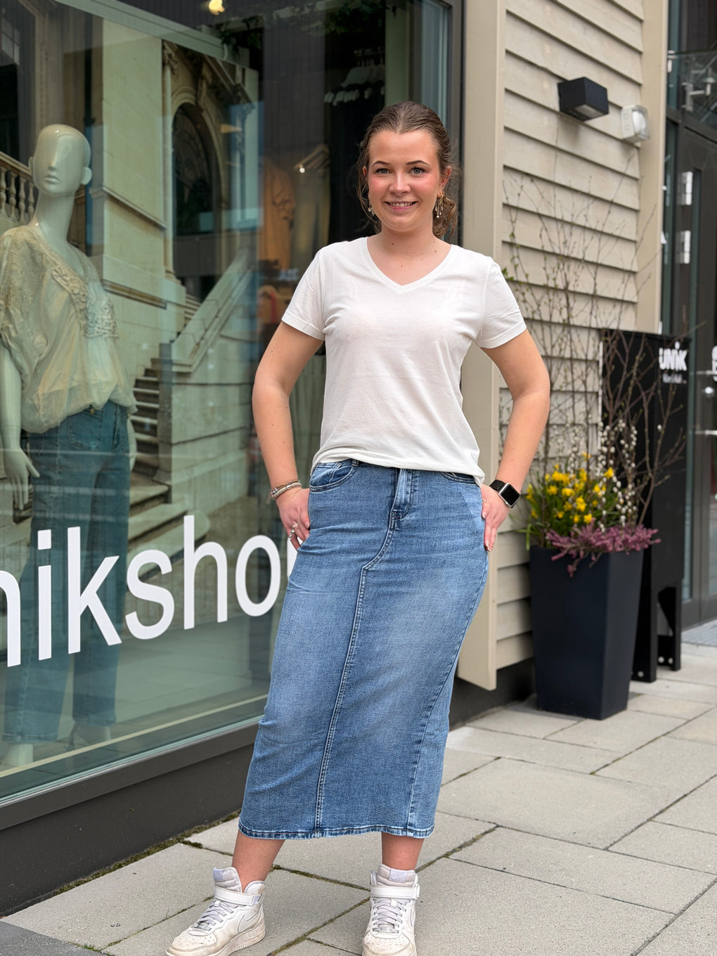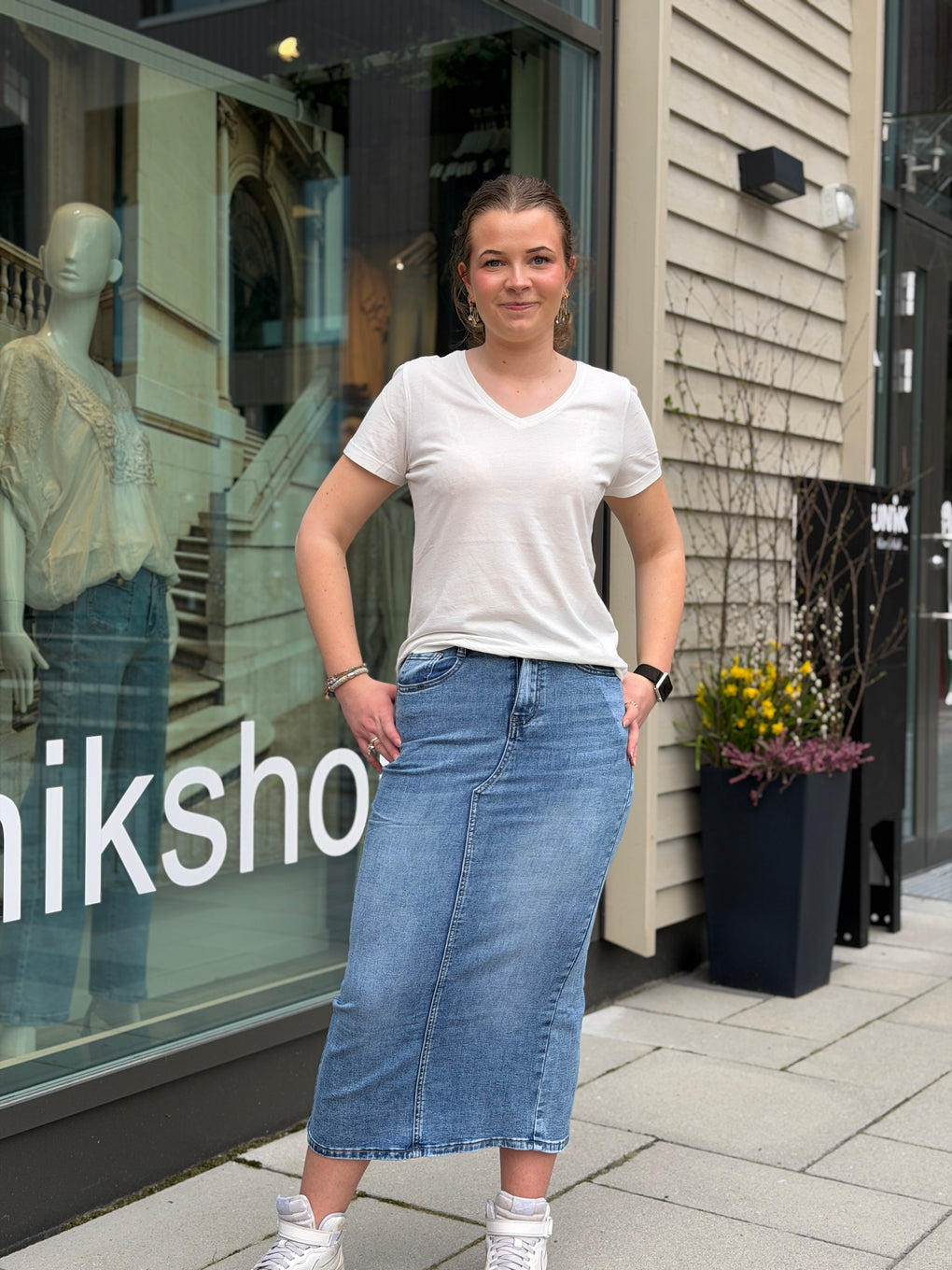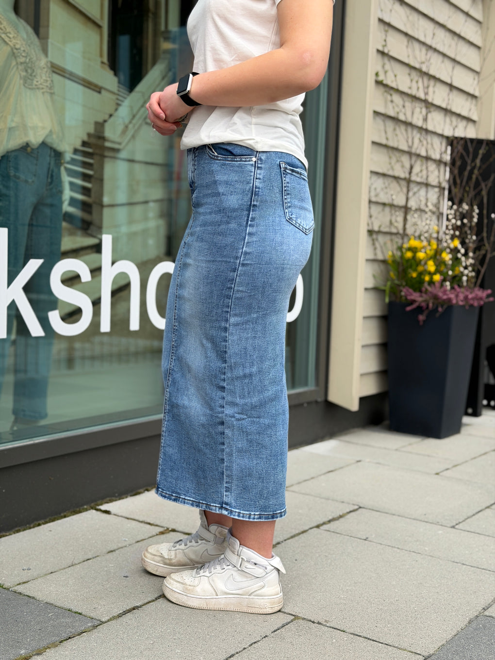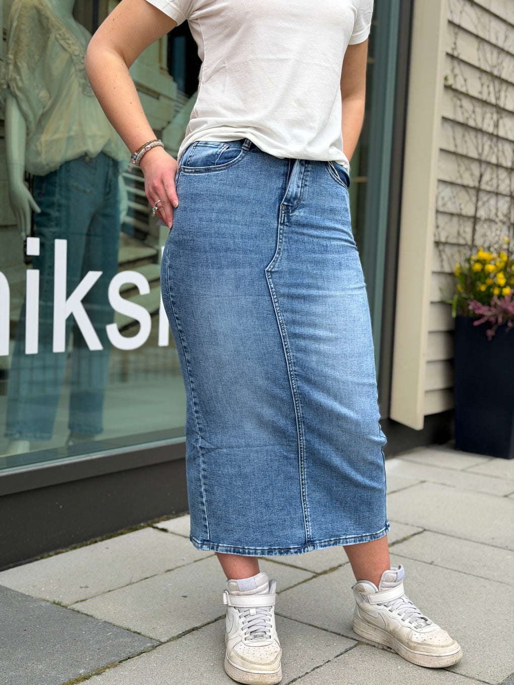 Mykt og godt denimskjørt i en fin vask. Lommer foran og bak.