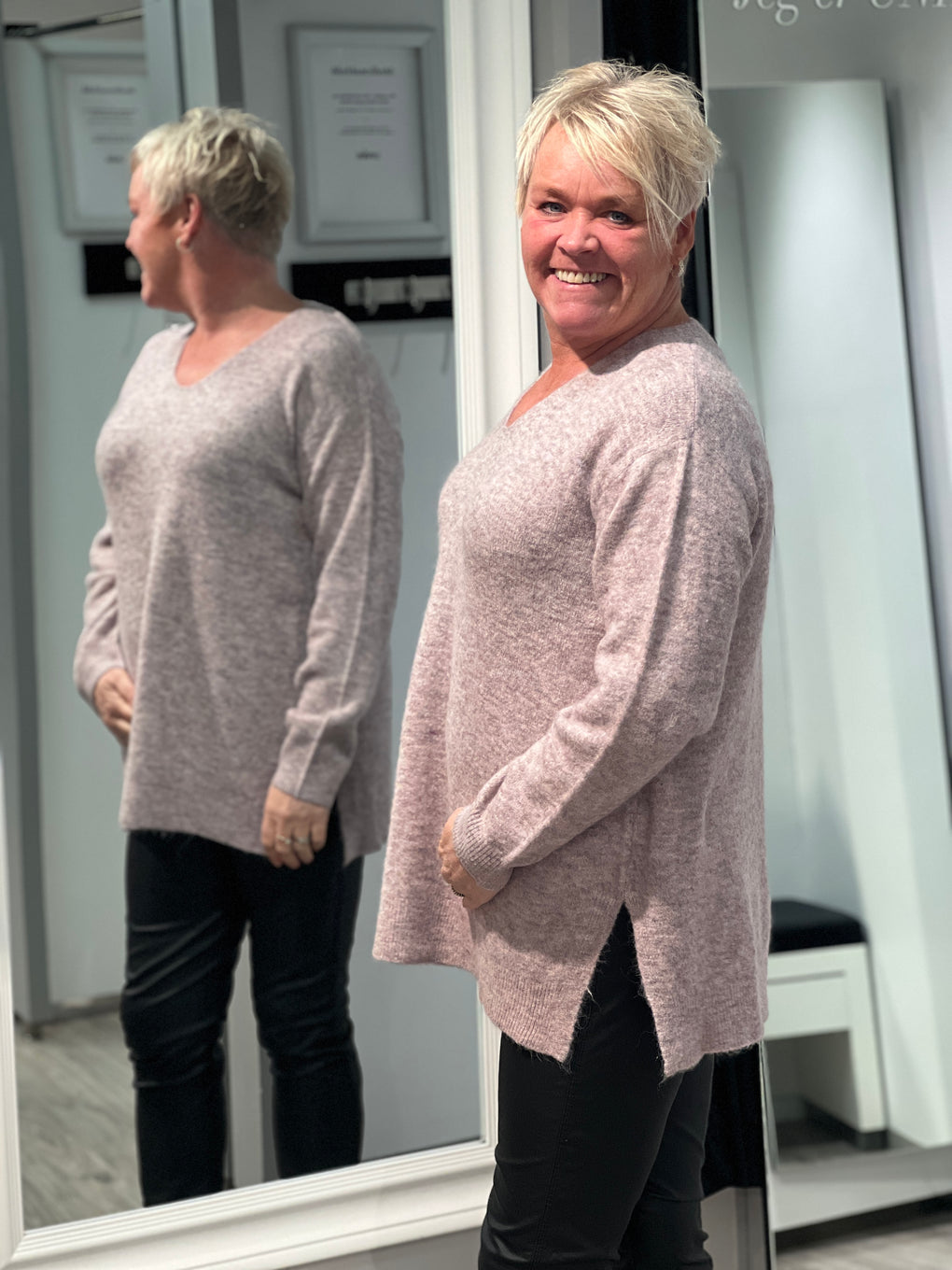 Supersøt, god og myk genser med v-hals og lange ermer.