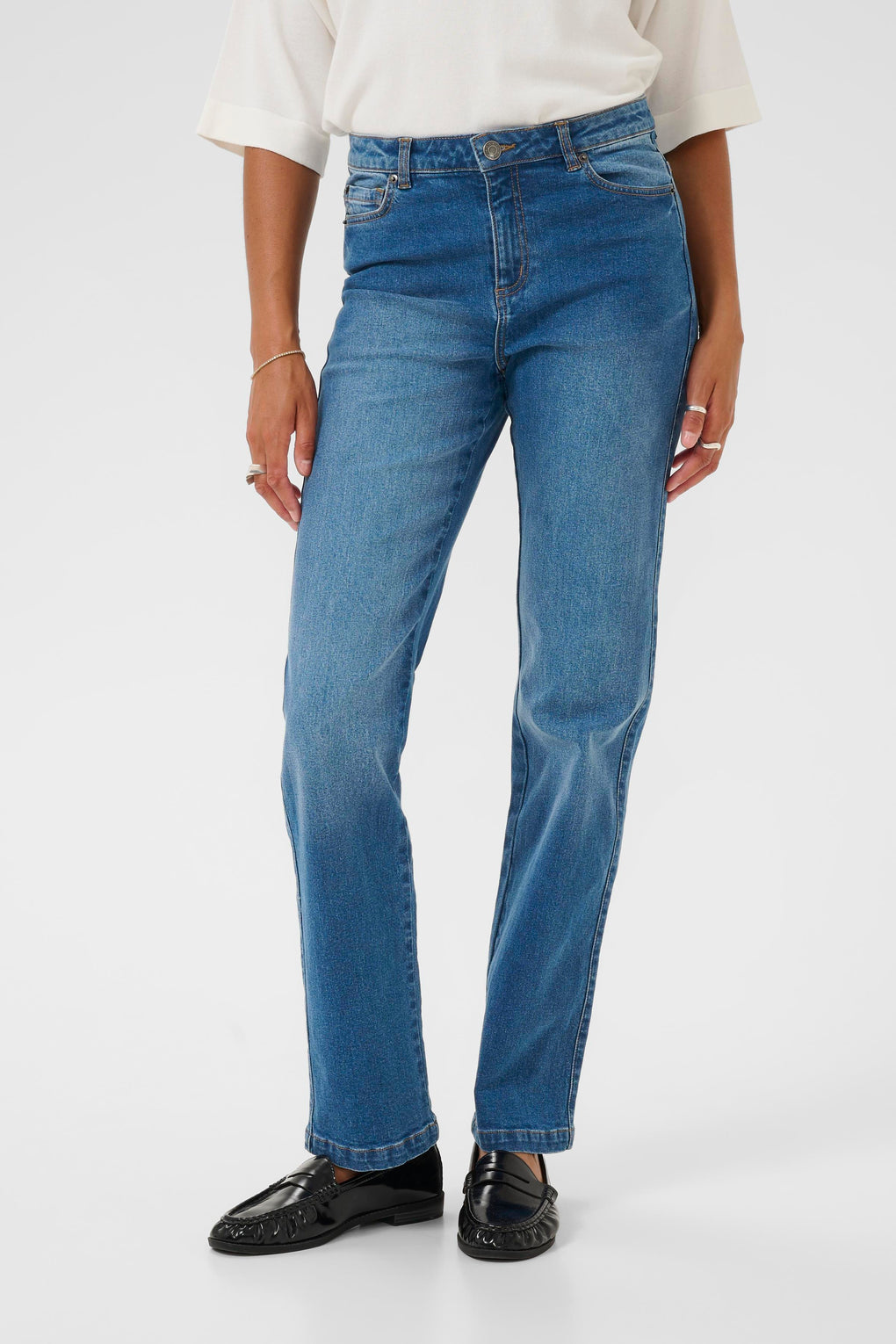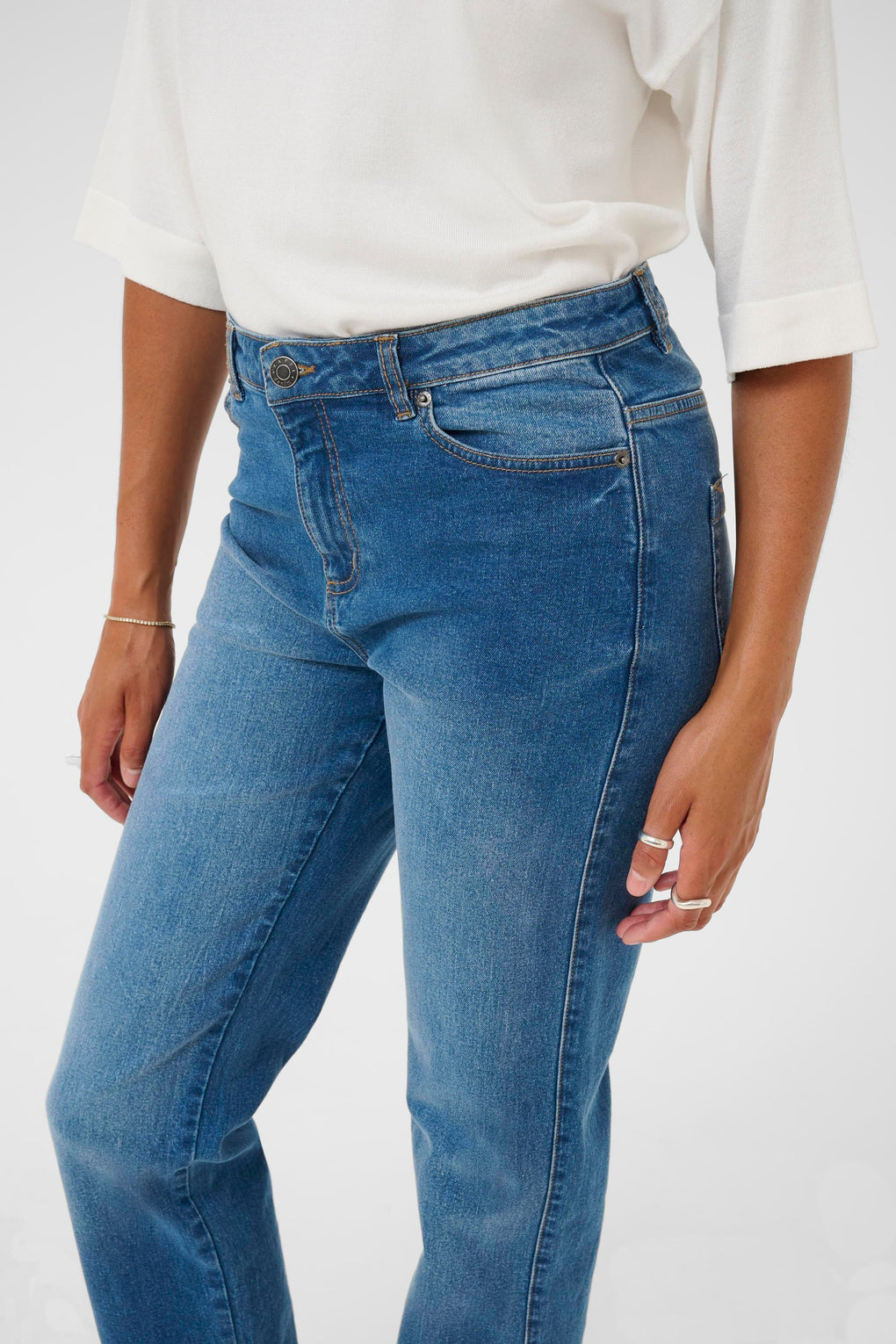 Jeans med rette ben og middels høy midje. Tidløst femlommers design og behagelig stretch for god komfort. Allsidig til hverdagsbruk. Denne er 32 cm benlengde.