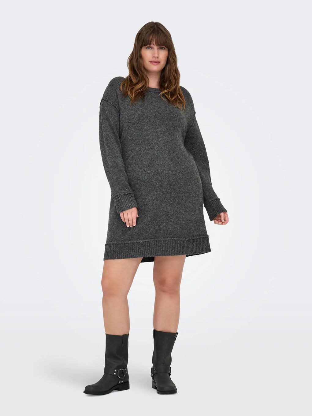 Enkel og fin strikket kjole med fin rund hals og lange ermer.