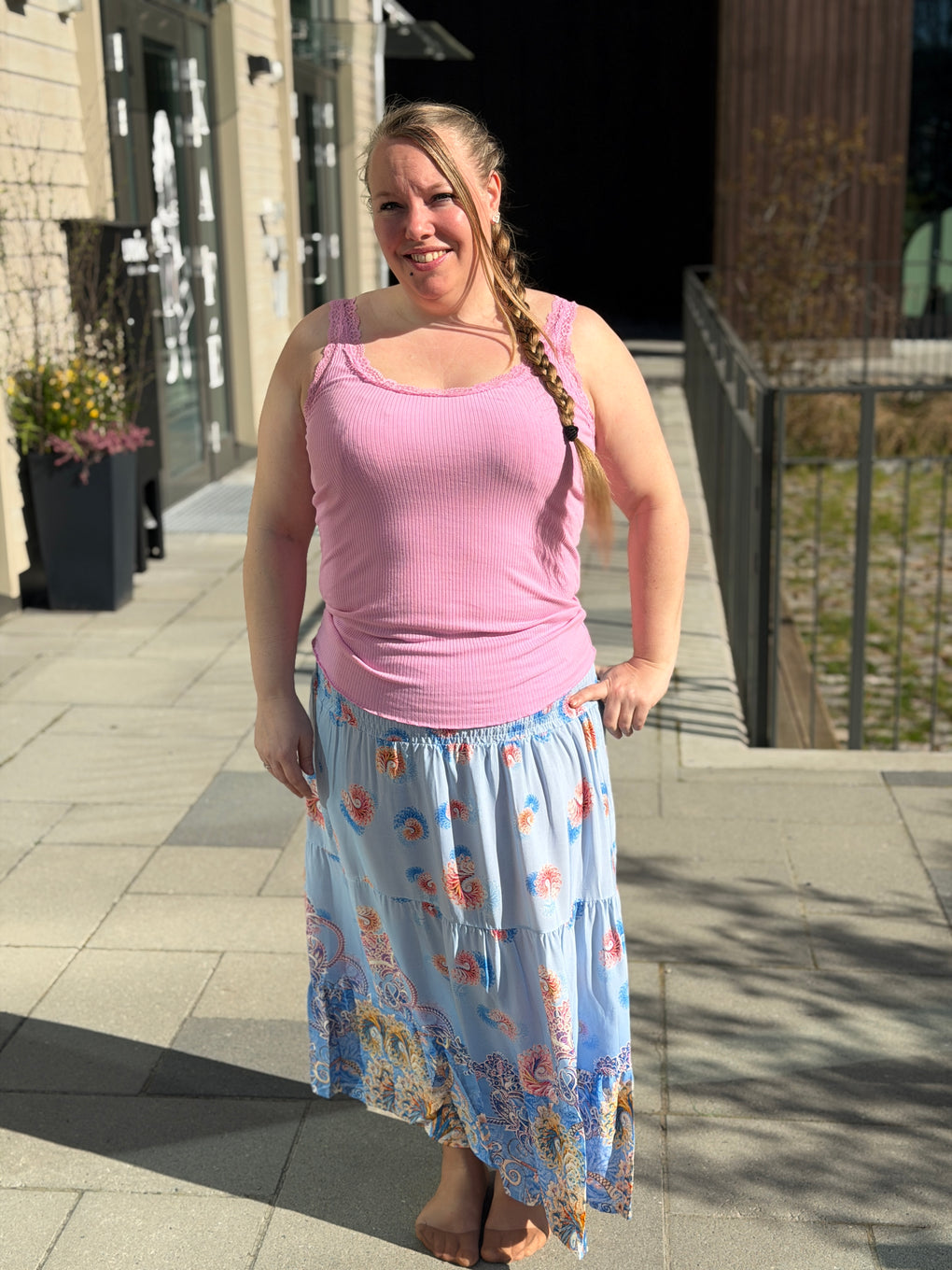 Nydelig skjørt med strikk i livet og herlig print.