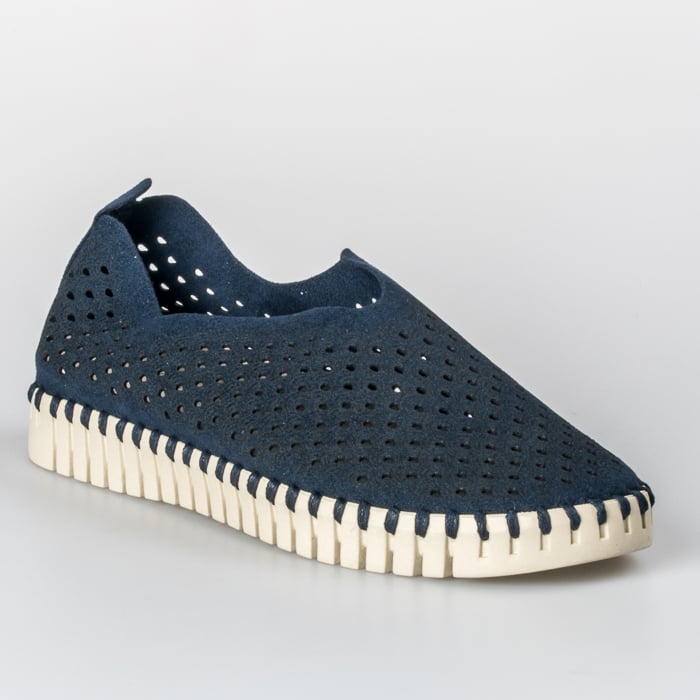 Sko Tulip 3275 fra Ilse Jacobsen i smidig slip on-modell med perforerte hull og mønster. Tykk såle med synlige rifler og dekorativ søm langs kanten. Logo bak på sålekanten. Myk innersåle i skinn.